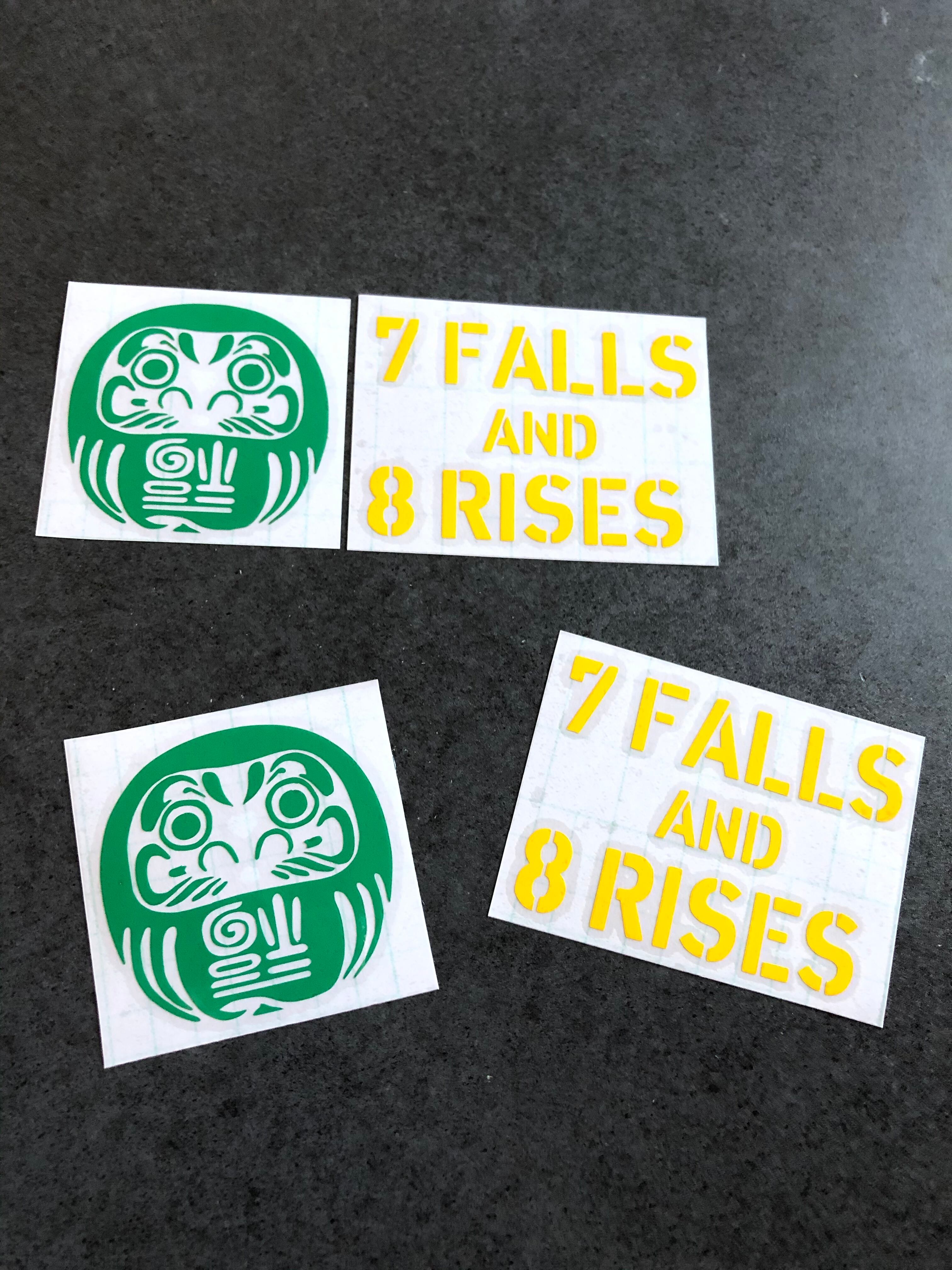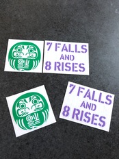 【 逆さ福 達磨 ダルマ 7FALLS AND 8RISES 】達磨緑色 世田谷 ステッカー お得4枚セット 【文字のカラー選択可】 送料無料♪