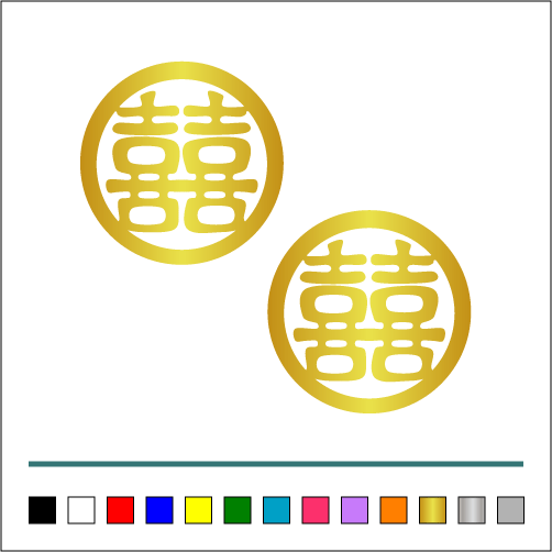 中華 中国 お祝い【 双喜紋 丸 002 】ステッカー お得2枚セット トラック デコトラ 【カラー選択可】 送料無料♪